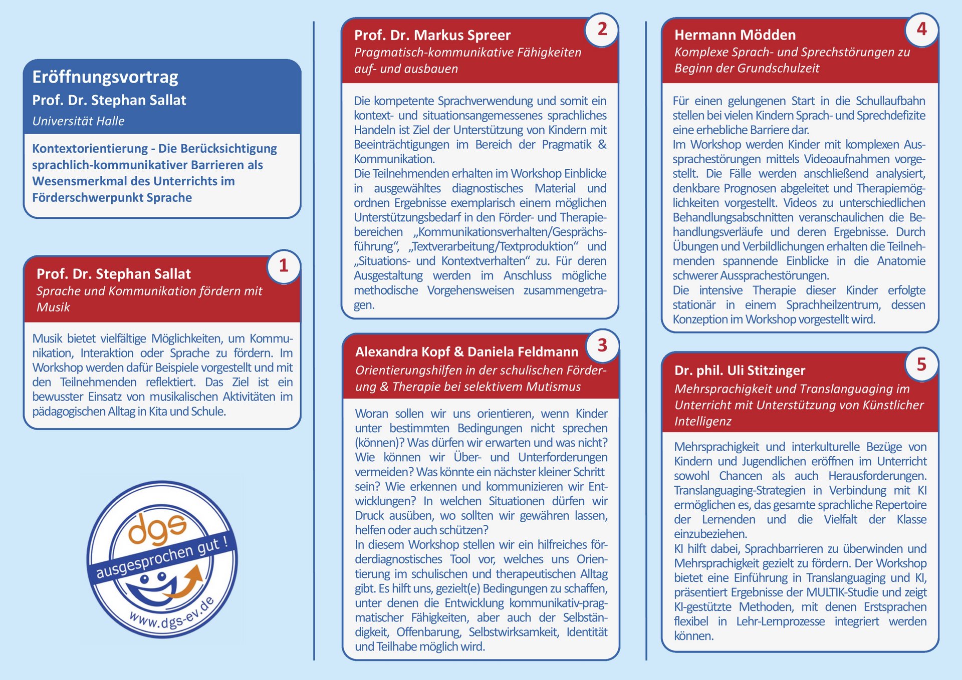 Ein interessantes Programm und Austausch mit verschiedenen Kolleginnen und Kollegen aus dem Bereich der Sprachheilpädagogik erwarten Sie.